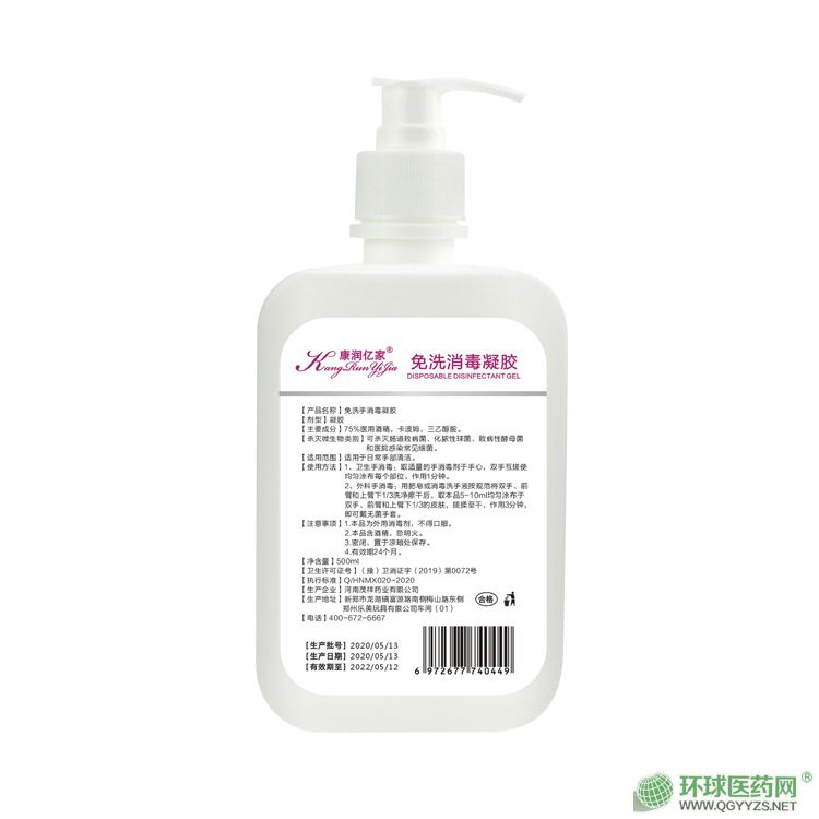 | 產(chǎn)品名稱 | 康潤億家免洗消毒凝膠 |