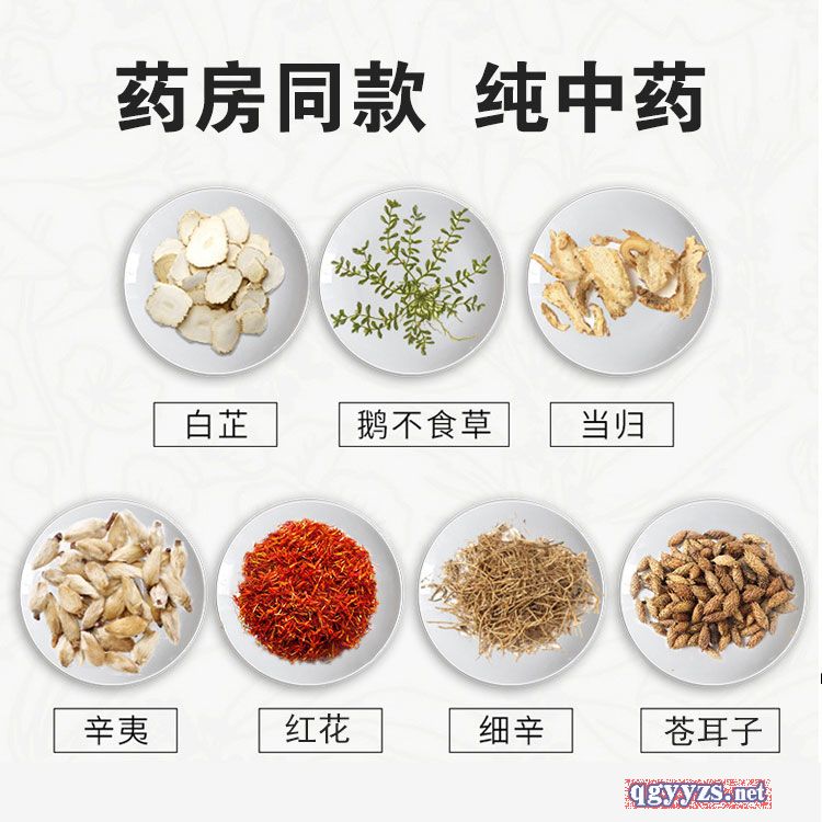 | 主要成分 | 辛夷、蒼耳子、白芷、細辛、鵝不食草、紅花、當歸 |