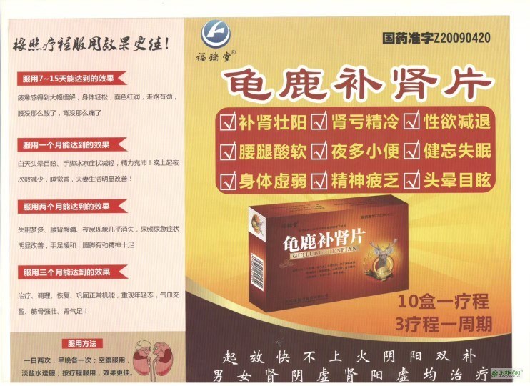 | 產(chǎn)品名稱 | 龜鹿補(bǔ)腎片 |
