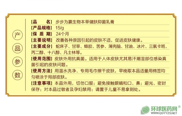 產(chǎn)品名稱: 步步為贏健膚乳膏生物本草抑菌乳膏
