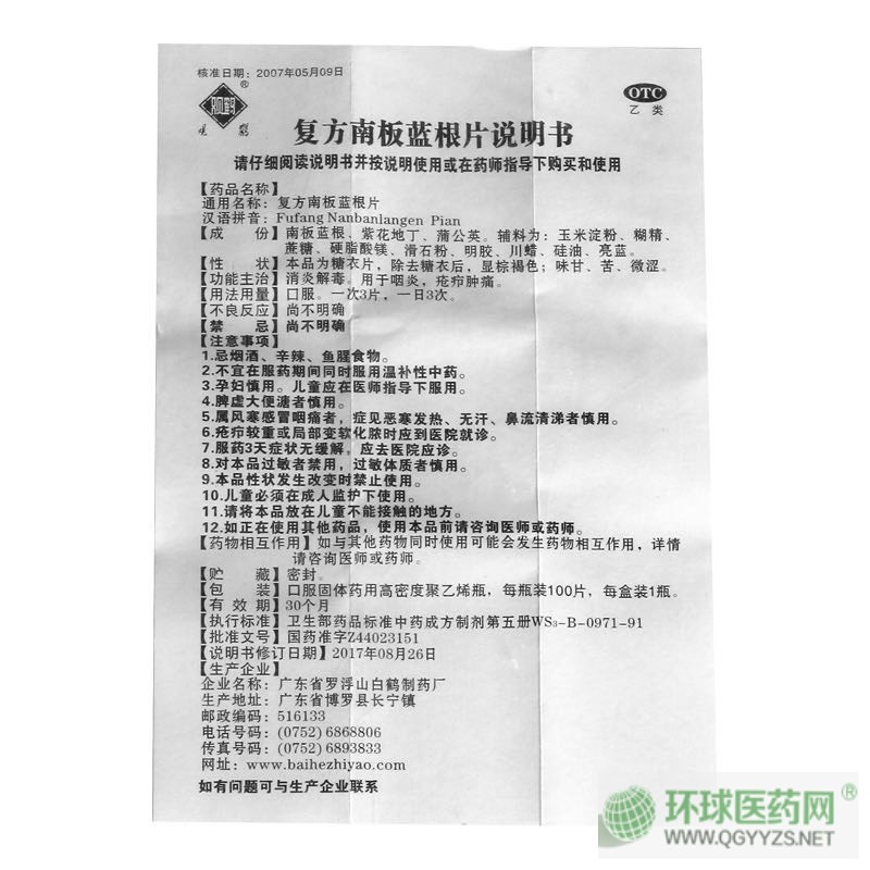 | 補充說明 | 本品為淺藍色糖衣片,除去糖衣后顯棕褐色;氣微、味微甜而后澀。 |