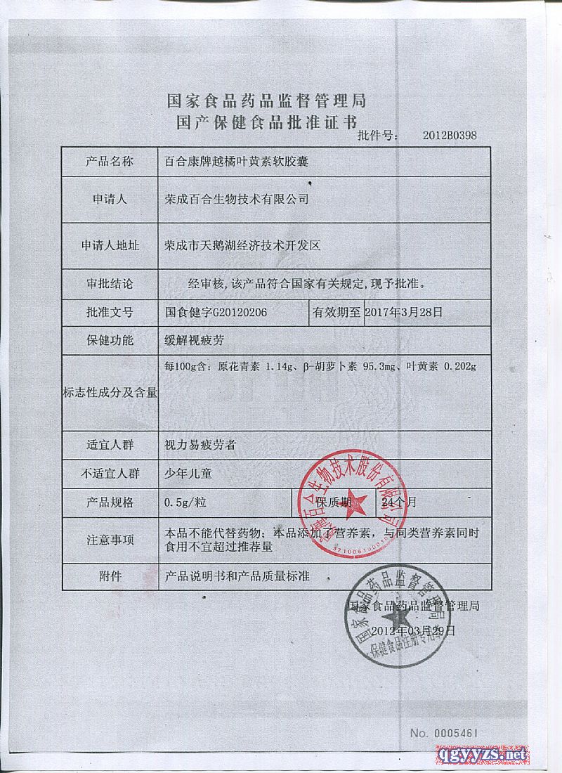 批準(zhǔn)文號(hào): 國食健字G20120206 【驗(yàn)證真?zhèn)?/a>】