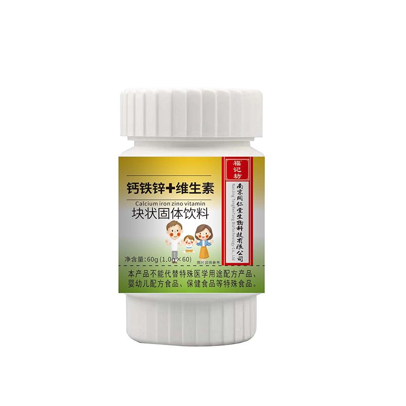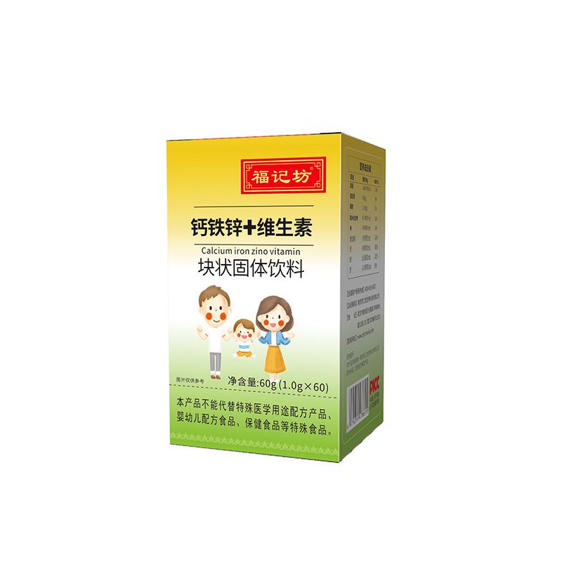 | 產(chǎn)品名稱 | 鈣鐵鋅+維生素塊狀固體飲料 |