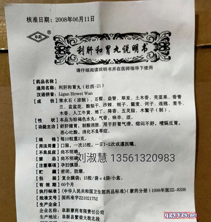 通用名稱: 利肝和胃丸