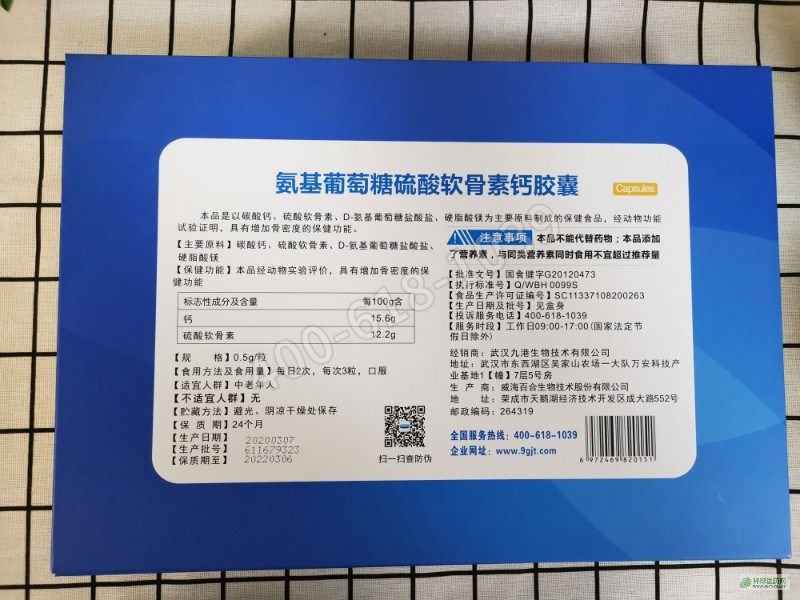 產(chǎn)品名稱: 氨基葡萄糖硫酸軟骨素鈣膠囊