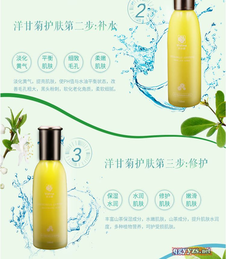 | 產(chǎn)品用途 | 洗面奶、洋甘菊能有效舒緩皮膚,改善干癢干燥。舒緩安撫水:舒敏修復(fù)敏感肌,補(bǔ)水保濕,改善浮腫、黑眼圈。舒緩安撫柔潤精華:深層滲透、鎖水,修復(fù)干紋。舒緩柔潤眼凝膠:緊致眼皮,撫平細(xì)紋,減少黑眼圈 |