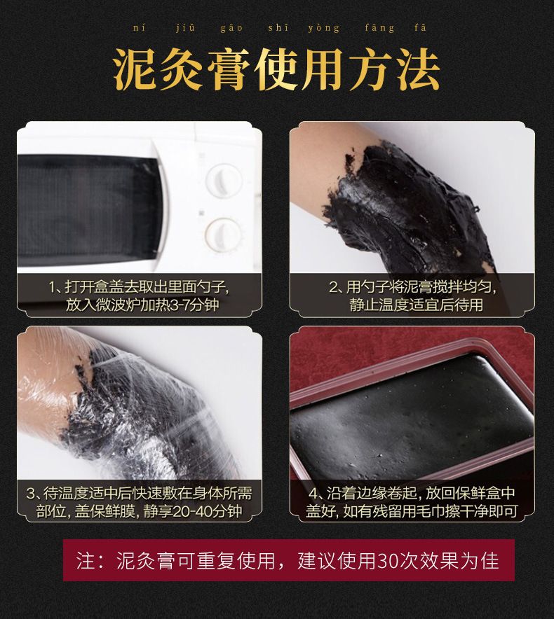 | 使用方法 | 1、去掉蓋子,用微波爐將泥灸加熱3分鐘左右取出進(jìn)行攪扮均勻,備用。 2、清潔病灶處,先將灸油輕輕推按相關(guān)部位15分鐘,用熱毛巾將皮膚熱敷1分鐘左右,待人體感覺泥灸溫度宜后,攤涂在相應(yīng)病理區(qū),厚度大約5毫米,謹(jǐn)防燙傷。 3、蓋上防水透氣紙或用保鮮膜替代,蓋好保溫用的被子。5分鐘發(fā)熱。 4、45分鐘左右取下即可,清潔施灸區(qū)?梢杂镁挠突駼B油清潔。 5、灸后兩小時(shí)勿接觸生水,使皮膚休息至少8小時(shí),可繼續(xù)使用。 |