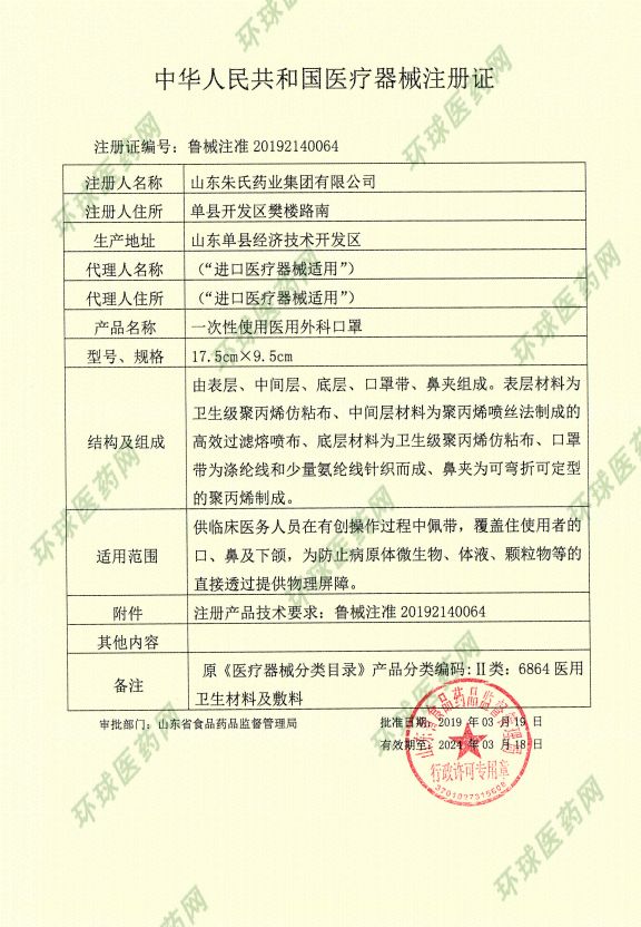 批準文號: 魯械注準20192140064 【驗證真?zhèn)?/a>】