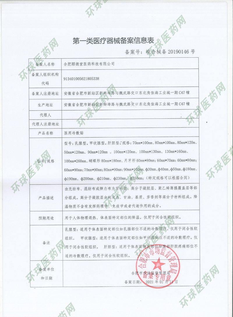 | 補(bǔ)充說(shuō)明 | 【禁忌癥】孕婦禁用,哺乳期女慎用,粘膜、濕疹、未愈傷口處禁用,對(duì)本產(chǎn)品材料過(guò)敏者禁用。 【注意事項(xiàng),其他警示及提示性內(nèi)容】 a)嚴(yán)格按照使用說(shuō)明書(shū)進(jìn)行操作; b)使用前先檢查包裝,包裝破損禁止使用; c)產(chǎn)品過(guò)期請(qǐng)停止使用; d)使用后若出現(xiàn)癥狀無(wú)緩解或出現(xiàn)局部紅腫、疼痛及其他不適癥狀時(shí),請(qǐng)立即停止使用,并到醫(yī)院就診; e)如正在使用其他藥品,使用本品前請(qǐng)咨詢醫(yī)師或藥師; f)產(chǎn)品不得進(jìn)行二次使用; g)請(qǐng)將本品放在兒童不能接觸的地方,防止誤貼口鼻或誤食; h)為**使用效果,每貼可使用1-2天。 【操作指南】打開(kāi)包裝,取出冷敷貼,揭去薄膜或離型紙,將凝膠面貼敷甲狀腺部位皮膚上,輕壓周邊緊貼皮膚。 【保存方法】應(yīng)保存在常溫、干燥、通風(fēng)良好的室內(nèi)。 |