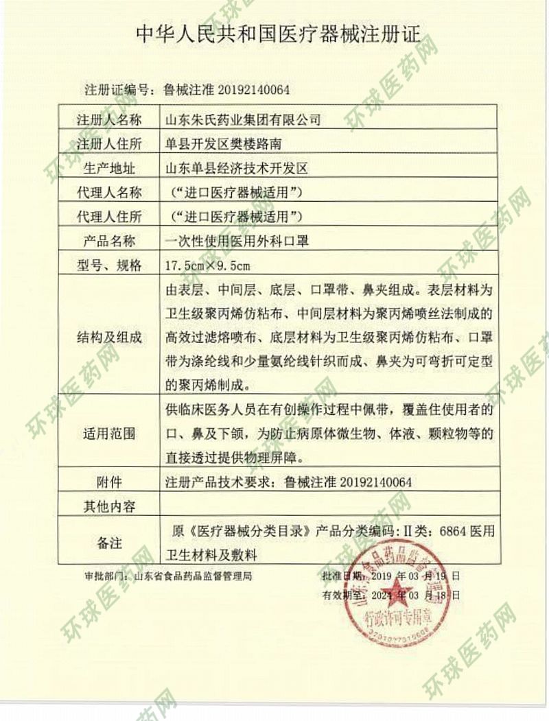 | 注冊商標(biāo) | 一次性醫(yī)用外科口罩 |