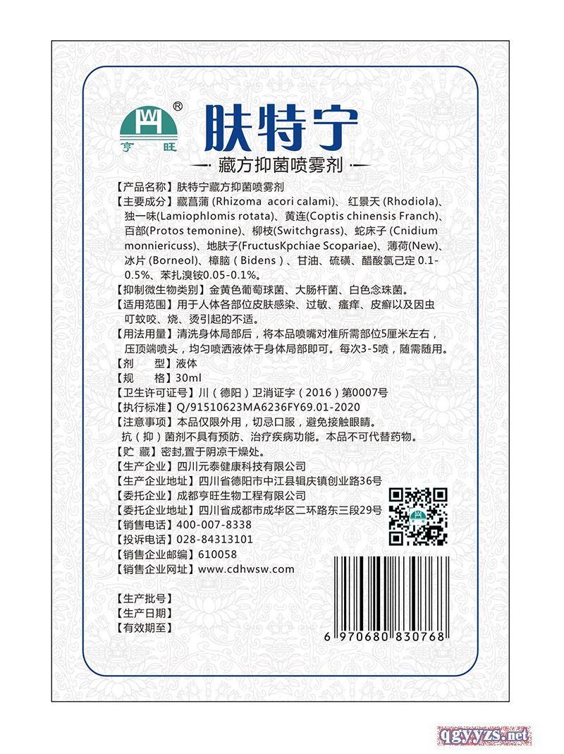 產(chǎn)品名稱: 膚特寧◆藏方抑菌噴霧劑