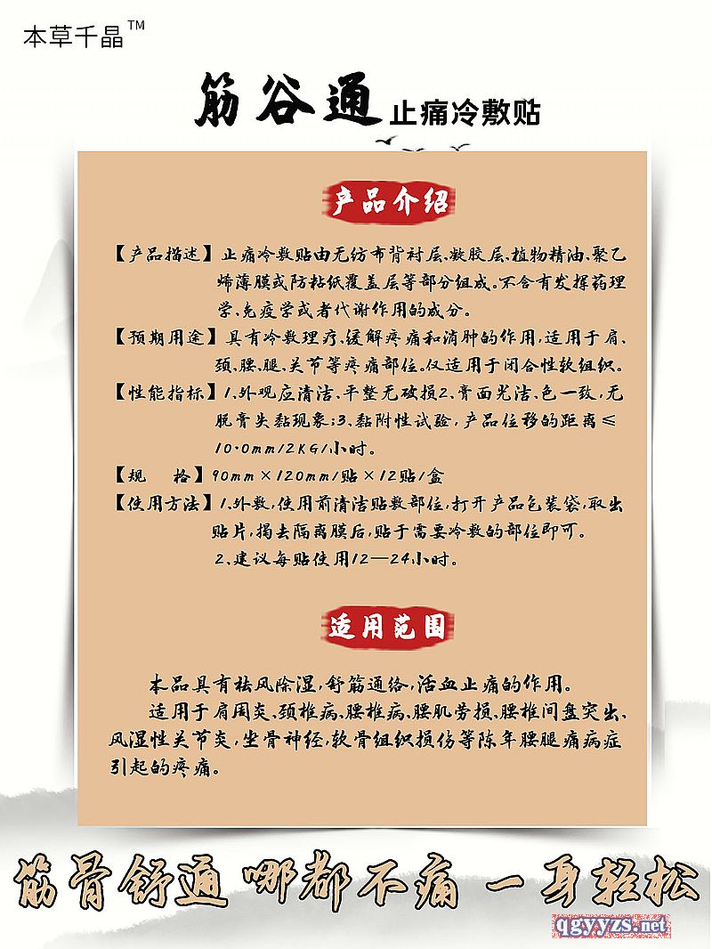 產(chǎn)品名稱: 筋谷通▲止痛冷敷貼