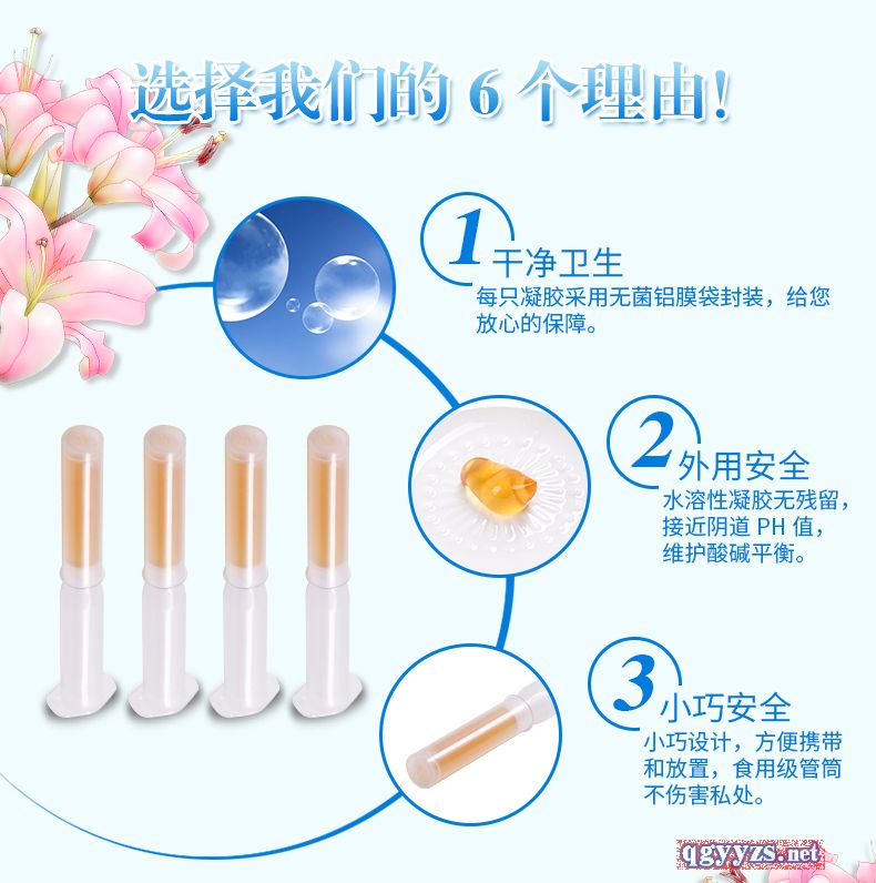 | 使用方法 | 清洗外陰后,取本品一支,先將凝膠助推器的前蓋取下,并將所取前蓋插入助推器后端作為推桿使用;平躺后借凝膠助推器將凝膠推入陰道不適處,靜躺保持三分鐘。 |