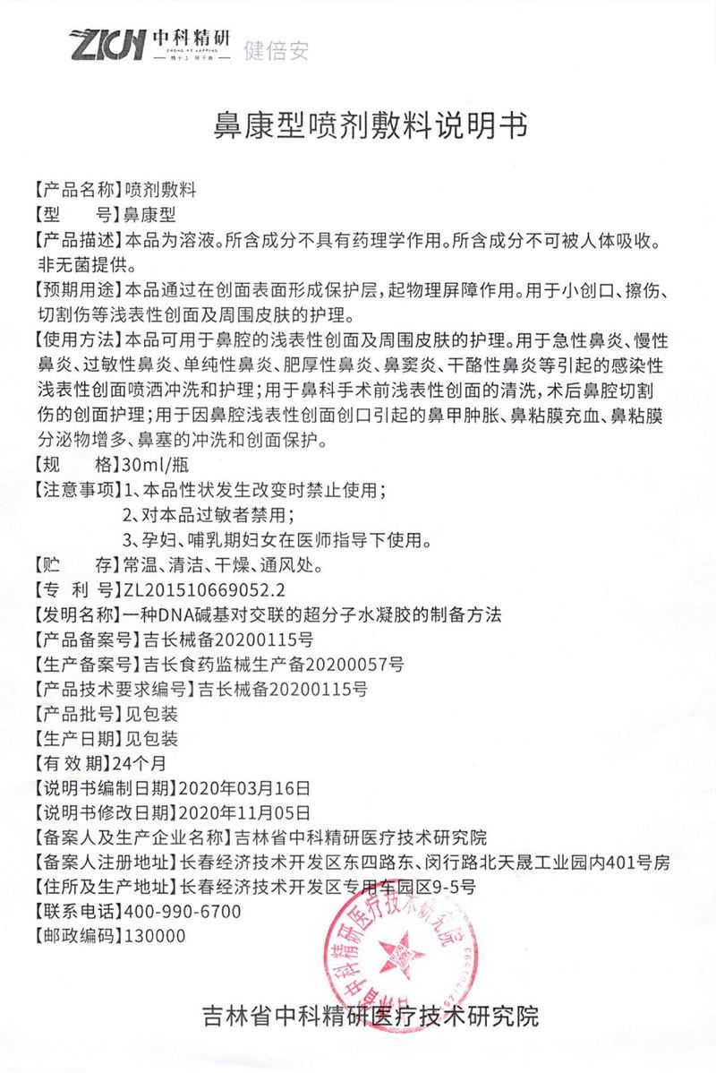 產(chǎn)品名稱: 鼻康型液體敷料