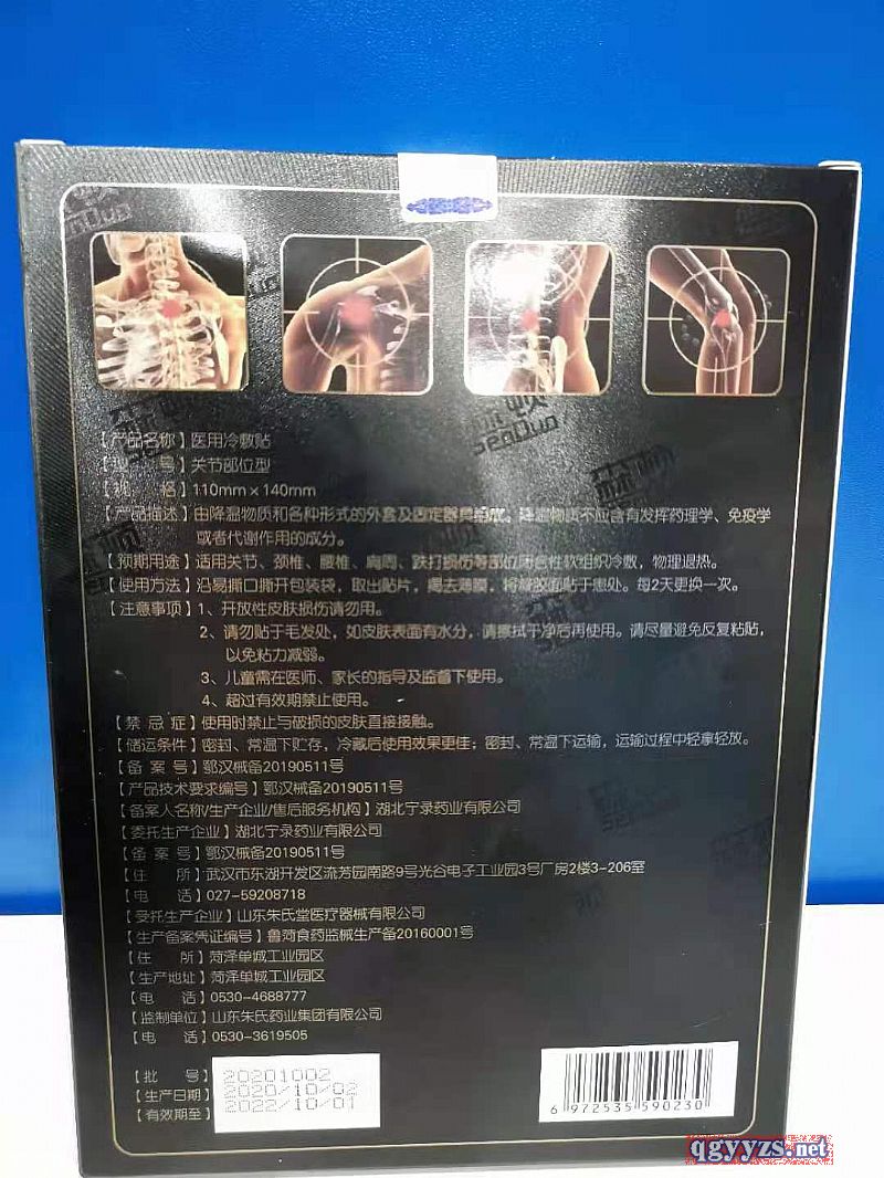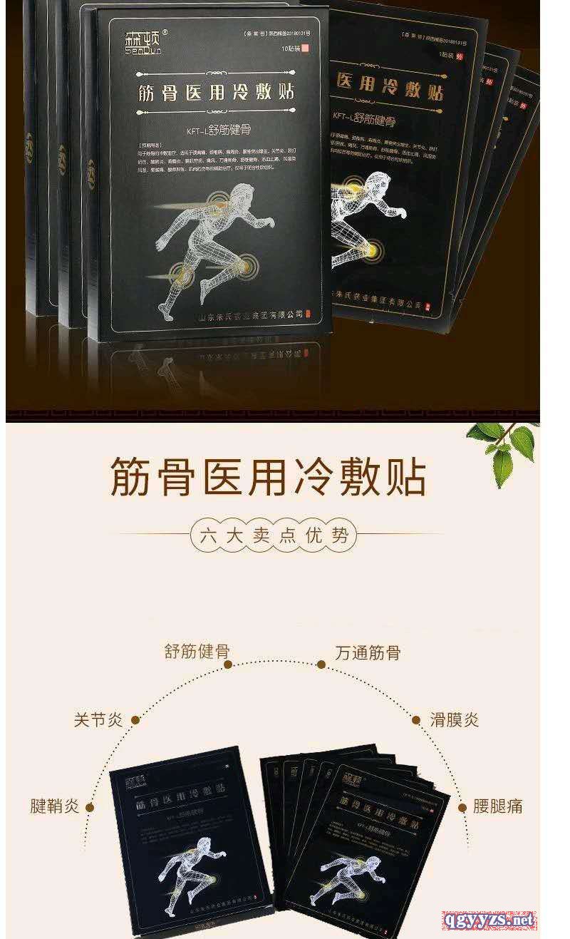 | 功能主治 | 用于筋骨的冷敷理療,適用于頸肩痛、頸椎病、肩周炎、腰椎突出增生、關(guān)節(jié)炎、跌打損傷、腱鞘炎、滑膜炎、腰肌勞損、痛風(fēng)、萬(wàn)通筋骨、舒筋健骨、活血止痛、風(fēng)濕類風(fēng)濕、腰腿痛、酸麻腫脹、肌肉拉傷等的輔助治療。僅用于閉合性軟組織。 |