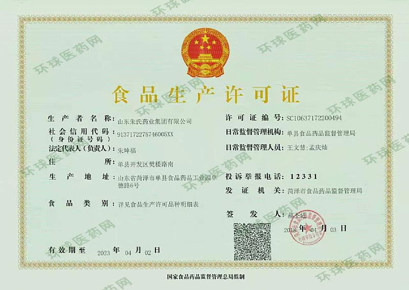 生產(chǎn)企業(yè): 山東朱氏藥業(yè)集團有限公司