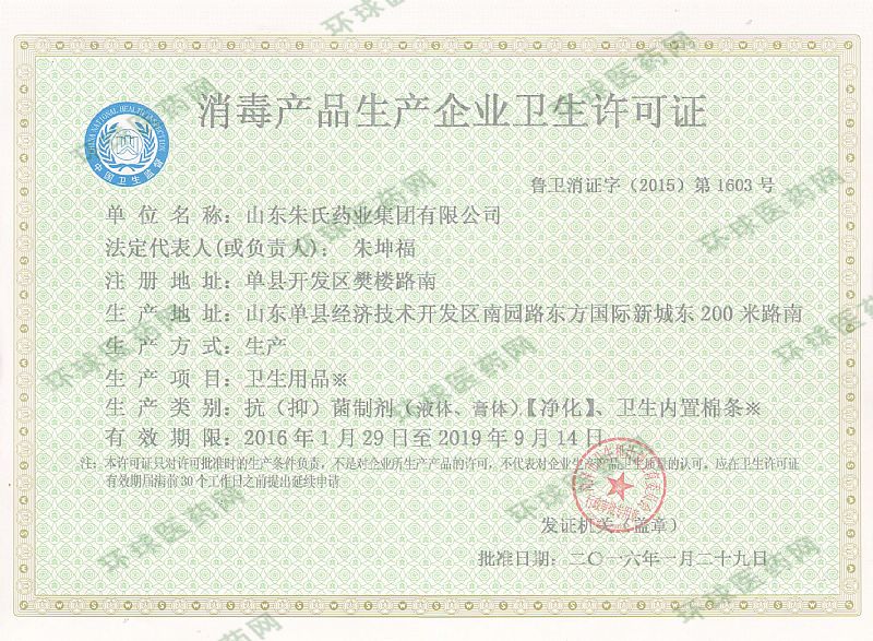批準(zhǔn)文號(hào): 魯衛(wèi)消證字2015第1603號(hào)