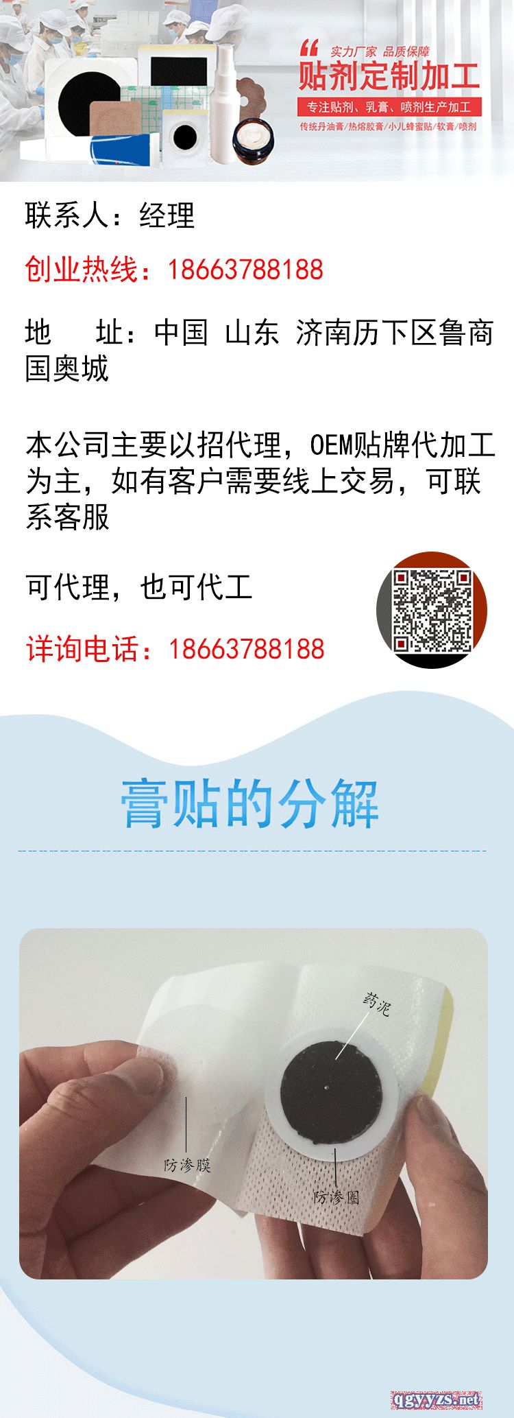 [主營(yíng)產(chǎn)品]:一類(lèi)械字號(hào)加工工廠 一類(lèi)械字號(hào)貼牌 膏藥加工工廠 貼劑加工工廠 貼膏加工工廠 膏貼加工工廠 噴劑加工 更多>