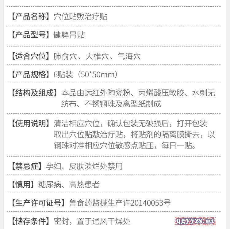 | 產(chǎn)品名稱 | 嘉業(yè)堂穴位貼敷治療貼(健脾胃貼) |