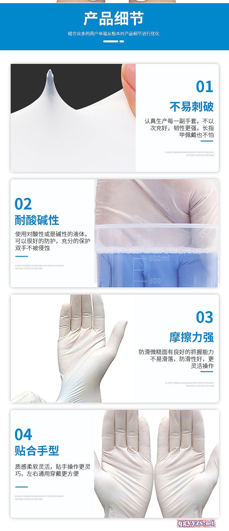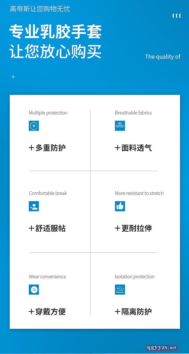 | 產(chǎn)品賣點 | 阻礙細菌,防止交叉感染,無異味。貼合不易破 |