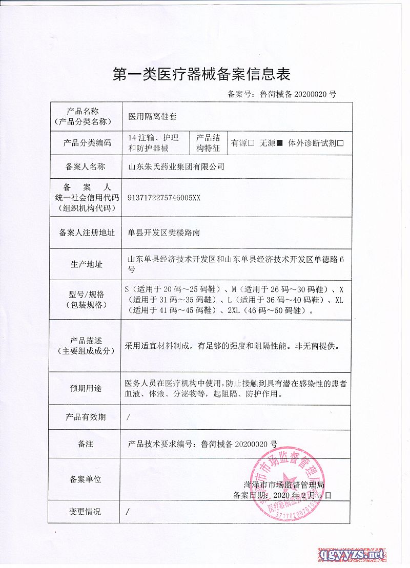 產品名稱: 朱氏藥業(yè)醫(yī)用隔離鞋套