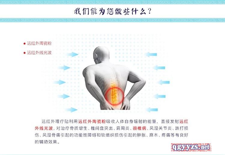 | 產(chǎn)品用途 | 用于QL-A頸椎病、QL-B肩周炎、QL-C骨質(zhì)增生、QL-D腰椎間盤突出、QL-E風(fēng)濕性關(guān)節(jié)炎、QL-F跌打損傷的輔助治療 |