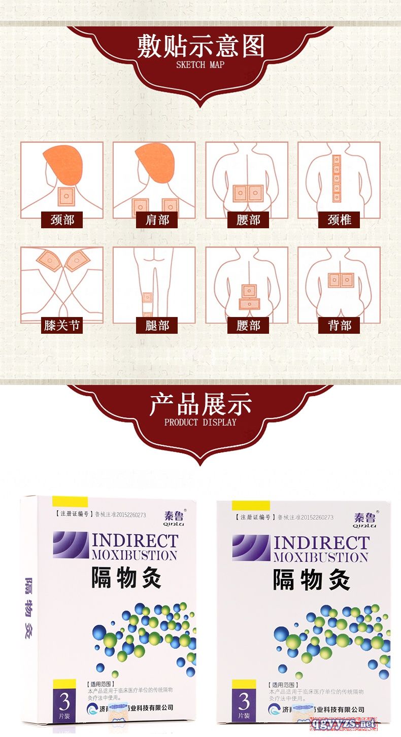 | 產(chǎn)品用途 | 隔物灸又稱隔物灸熱療貼,其由生物熱能和聚能灸體科學的結(jié)合在一起精制而成,是目前貼膏市場的革命性改進。隔物灸是集熱療、磁療、灸療治療于一體,采用先進環(huán)保材料、使用后迅速溫經(jīng)通絡,祛風散寒、活血化瘀、消炎鎮(zhèn)痛、改善微循環(huán),加速組織修復,具有止痛更治痛的效果。 |