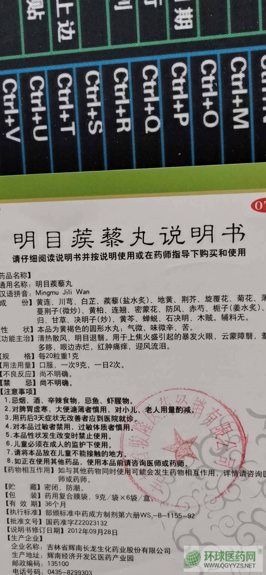通用名稱: 明目蒺藜丸