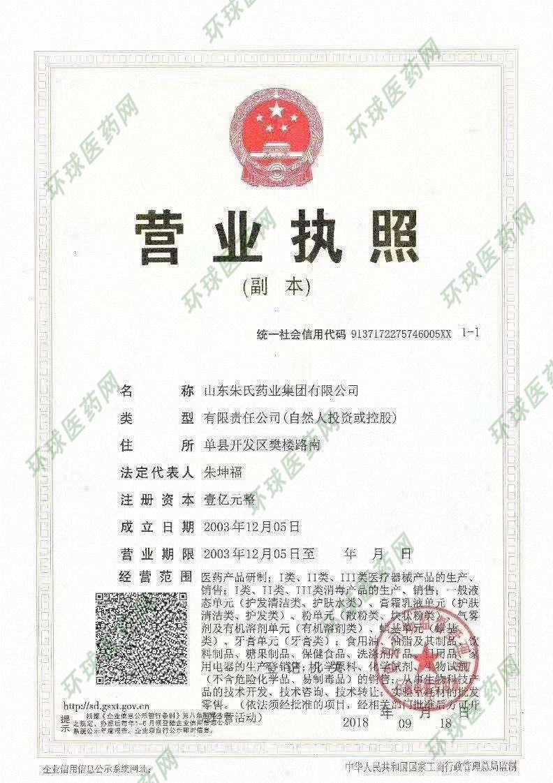 生產(chǎn)企業(yè): 山東朱氏藥業(yè)集團(tuán)有限公司