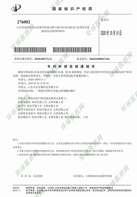 | 補(bǔ)充說明 | 豐辰孕寶說明書: 【產(chǎn)品名稱】豐辰育子片 【產(chǎn)品類型】壓片糖果 【配料表】山梨糖醇、瑪咖、杜仲雄花、黃精、蛹蟲草粉、硬脂酸鎂 【建議使用方法】每日兩次,每次3片,溫水吞食 【產(chǎn)品規(guī)格】0.5克/片*60片 【生產(chǎn)批號(hào)】見打碼 【生產(chǎn)日期】見打碼 【保質(zhì)期】24個(gè)月 【貯藏方法】置陰涼、干燥、通風(fēng)處保存 【注意事項(xiàng)】瑪咖≤25克/天;杜仲雄花≤6克/天,每日食用量不宜超過3克 【不適宜人群】嬰幼兒、兒童、哺乳期婦女、孕婦、食用真菌過敏者 【執(zhí)行標(biāo)準(zhǔn)號(hào)】SB/T 10347 【食品生產(chǎn)許可證編號(hào)】SC10637150100089 【委托生產(chǎn)企業(yè)】山東豐辰生物科技有限公司 【委托生產(chǎn)企業(yè)地址】山東省臨沂市蘭山區(qū)柳青街道馬陵山路與臥虎山路交匯英倫名嘉10號(hào)樓104號(hào) 【受委托生產(chǎn)企業(yè)】聊城美之健醫(yī)藥科技有限公司 【受委托生產(chǎn)企業(yè)地址】聊城高新技術(shù)開發(fā)區(qū)天翔科技園2號(hào)樓 【產(chǎn)地】聊城 【全國服務(wù)熱線】400-8278837 【產(chǎn)品名稱】豐辰孕子片 【產(chǎn)品類型】壓片糖果 【配料表】山梨糖醇、碳酸鈣、牡蠣肽、刀豆、白扁豆花、白砂糖、硬脂酸鎂 【建議使用方法】每日兩次,每次3片,溫水吞食 【產(chǎn)品規(guī)格】0.5克/片*60片 【生產(chǎn)批號(hào)】見打碼 【生產(chǎn)日期】見打碼 【保質(zhì)期】24個(gè)月 【貯藏方法】置陰涼、干燥、通風(fēng)處保存 【注意事項(xiàng)】每日食用量不宜超過3克 【執(zhí)行標(biāo)準(zhǔn)號(hào)】SB/T 10347 【食品生產(chǎn)許可證編號(hào)】SC10637150100089 【委托生產(chǎn)企業(yè)】山東豐辰生物科技有限公司 【委托生產(chǎn)企業(yè)地址】山東省臨沂市蘭山區(qū)柳青街道馬陵山路與臥虎山路交匯 |