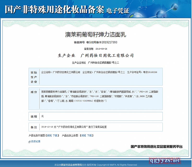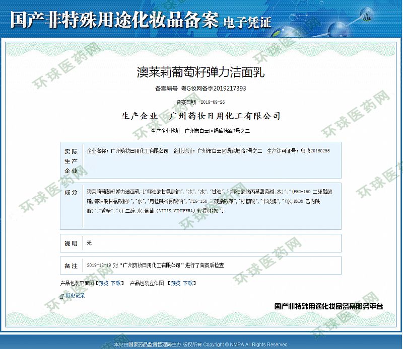 批準(zhǔn)文號(hào): 粵G妝網(wǎng)備字2019217393 【驗(yàn)證真?zhèn)?/a>】