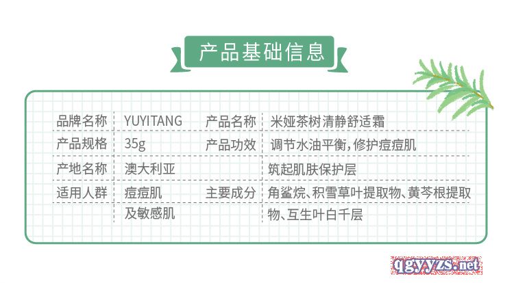 產品名稱: YUYITANG茶樹清靜舒適霜