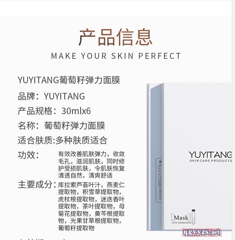 產(chǎn)品名稱: YUYITANG葡萄籽彈力面膜