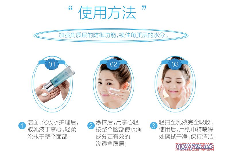 | 使用方法 | 先將適量的營養(yǎng)液倒入掌心中,由臉部易干燥的臉頰或眼睛四周開始涂抹。沿肌肉走向輕輕抹開。干性膚質(zhì)可以多涂一些,“t”型區(qū)要少抹一些,涂得太多或油性膚質(zhì)者,營養(yǎng)液的選擇也非常重要 |