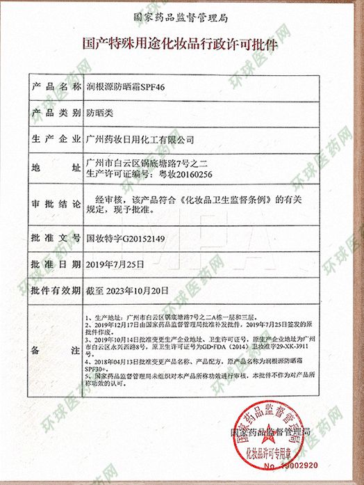 產(chǎn)品名稱: 潤根源防曬霜SPF46