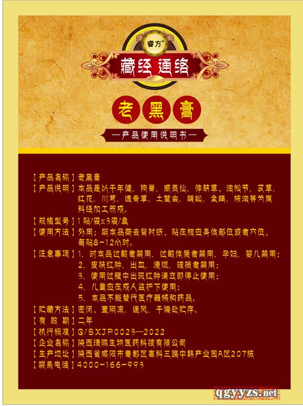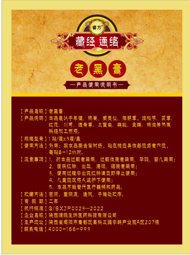 產(chǎn)品名稱: 睿方®藏經(jīng)通絡(luò)老黑膏