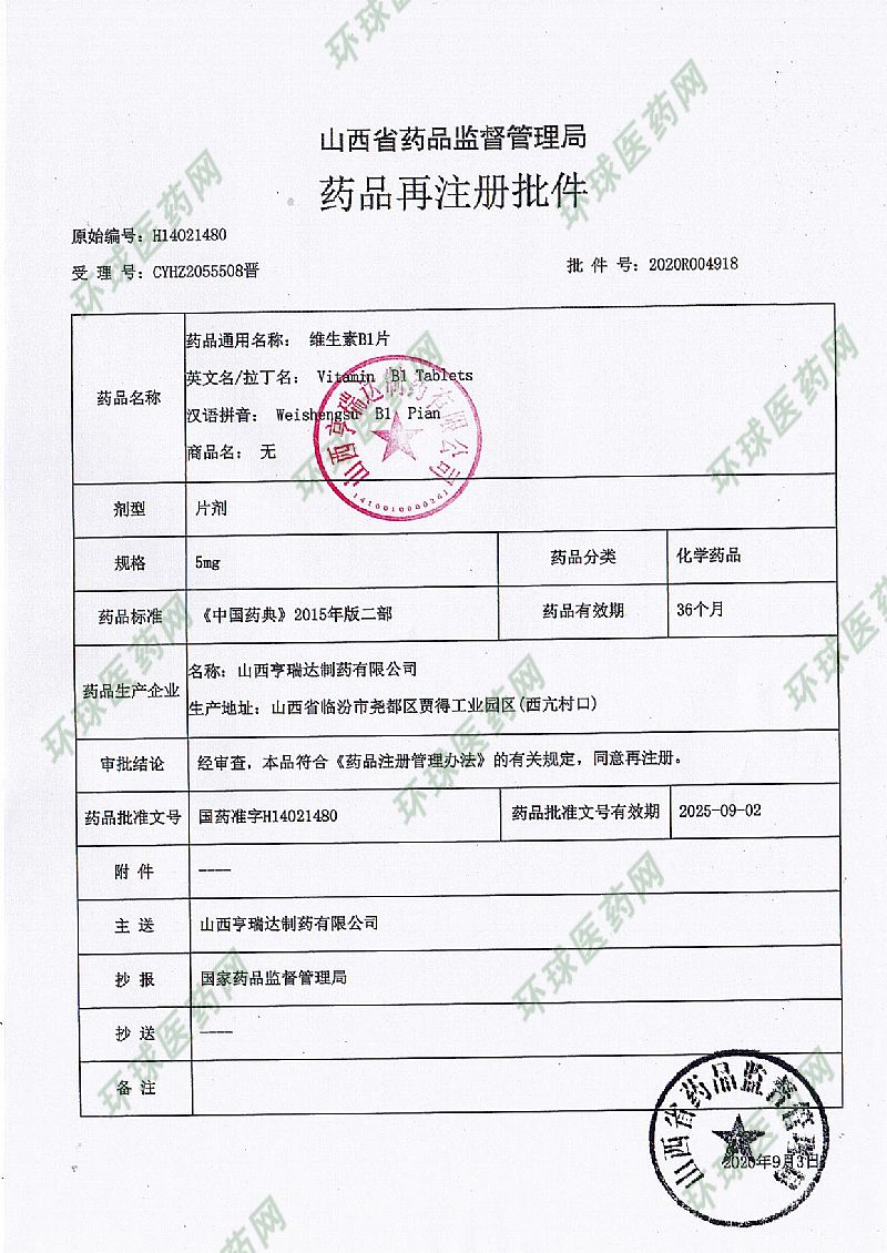 | 通用名稱 | 維生素B1片 |