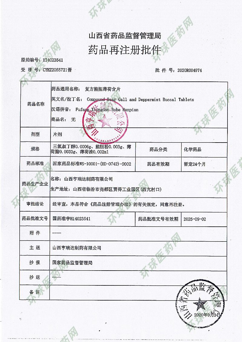 | 英文名稱 | Compound Bear Gall and Deppermint Buccal Tablets |