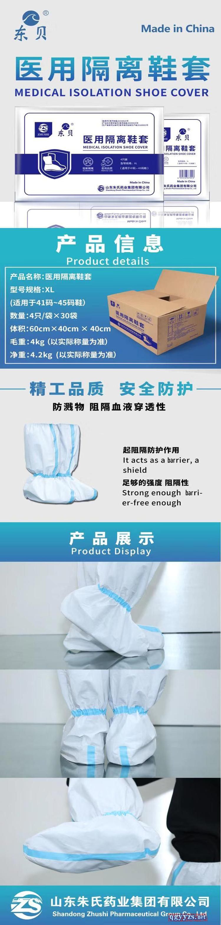 | 產(chǎn)品賣點 | 山東朱氏藥業(yè)專業(yè)提供醫(yī)用隔離鞋套,SMS無紡布,單向透氣,揮發(fā)內(nèi)部熱氣,防水防塵,可過濾細小顆粒物、粉塵等。透氣不透水,源頭廠家,資質(zhì)齊全,現(xiàn)貨直發(fā),遠銷歐美、日韓、東南亞等26個國家和地區(qū)。 |