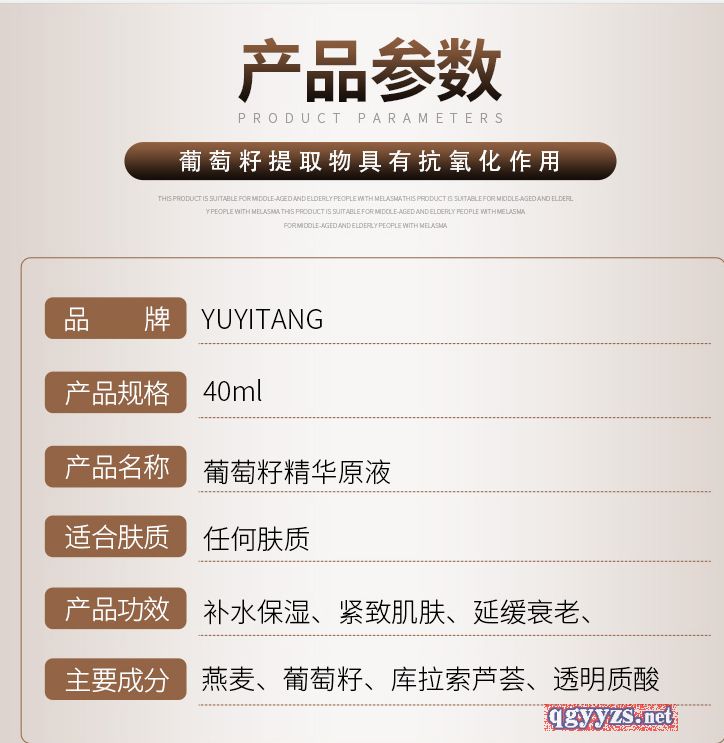 產(chǎn)品名稱: YUYITANG葡萄籽精華原液