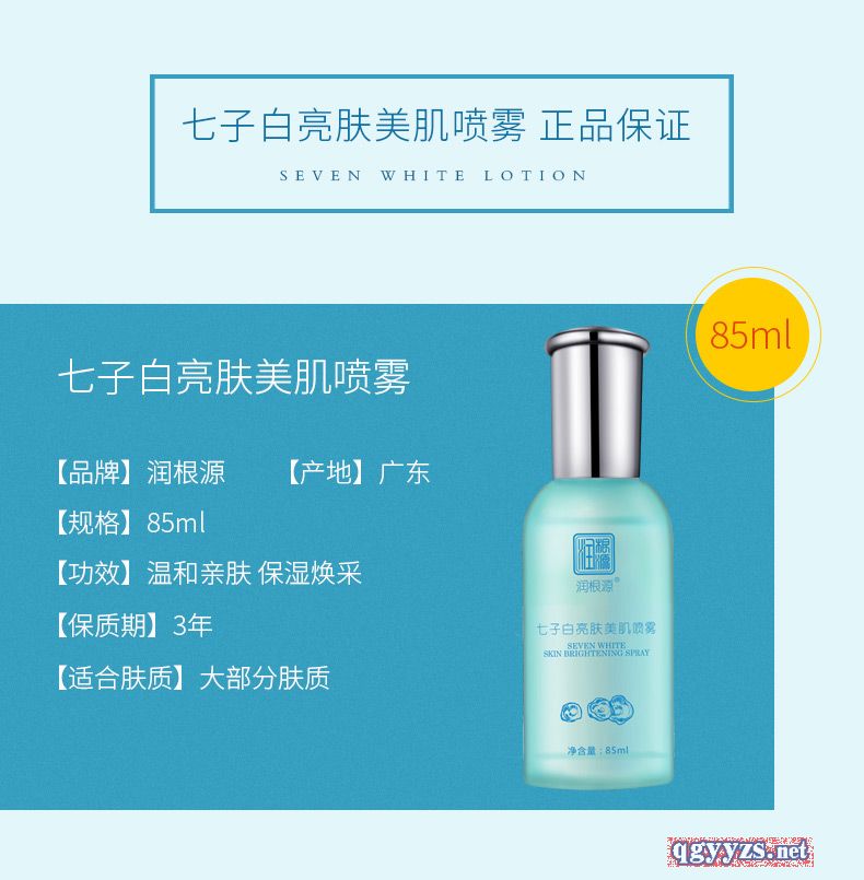 產(chǎn)品名稱: 潤根源七子白亮膚美肌噴霧