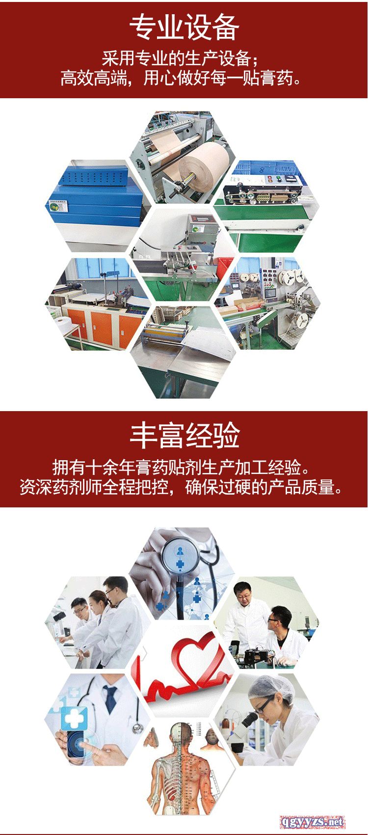 | 產(chǎn)品用途 | 通用名稱:膏藥、巴布貼、老膏藥、粉包、冷敷貼、液體、藥膏、藥粉等 產(chǎn)品成分:100多種名貴中藥材 產(chǎn)品規(guī)格:產(chǎn)品尺寸可根據(jù)客戶具體需求定制 材質(zhì):該產(chǎn)品由無紡布背襯層、凝膠層、聚乙烯薄膜覆蓋層等部位組成 |