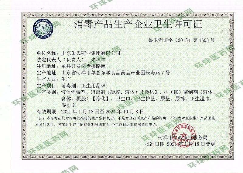 批準(zhǔn)文號(hào): 魯衛(wèi)消證字2015第1603號(hào)