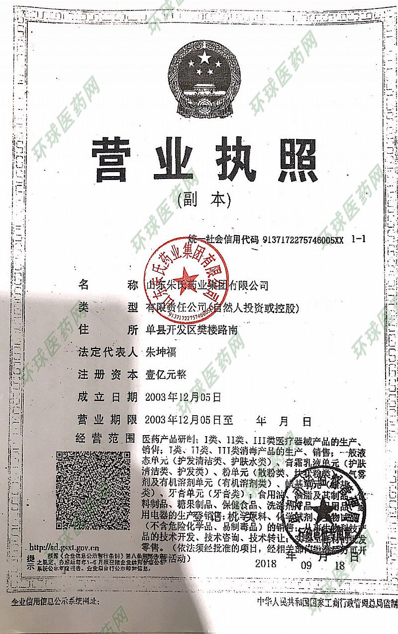 生產(chǎn)企業(yè): 山東朱氏藥業(yè)集團(tuán)有限公司