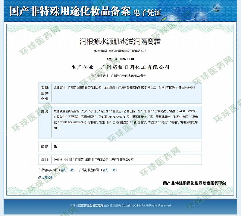 批準(zhǔn)文號(hào): 粵G妝網(wǎng)備字2016065443 【驗(yàn)證真?zhèn)?/a>】