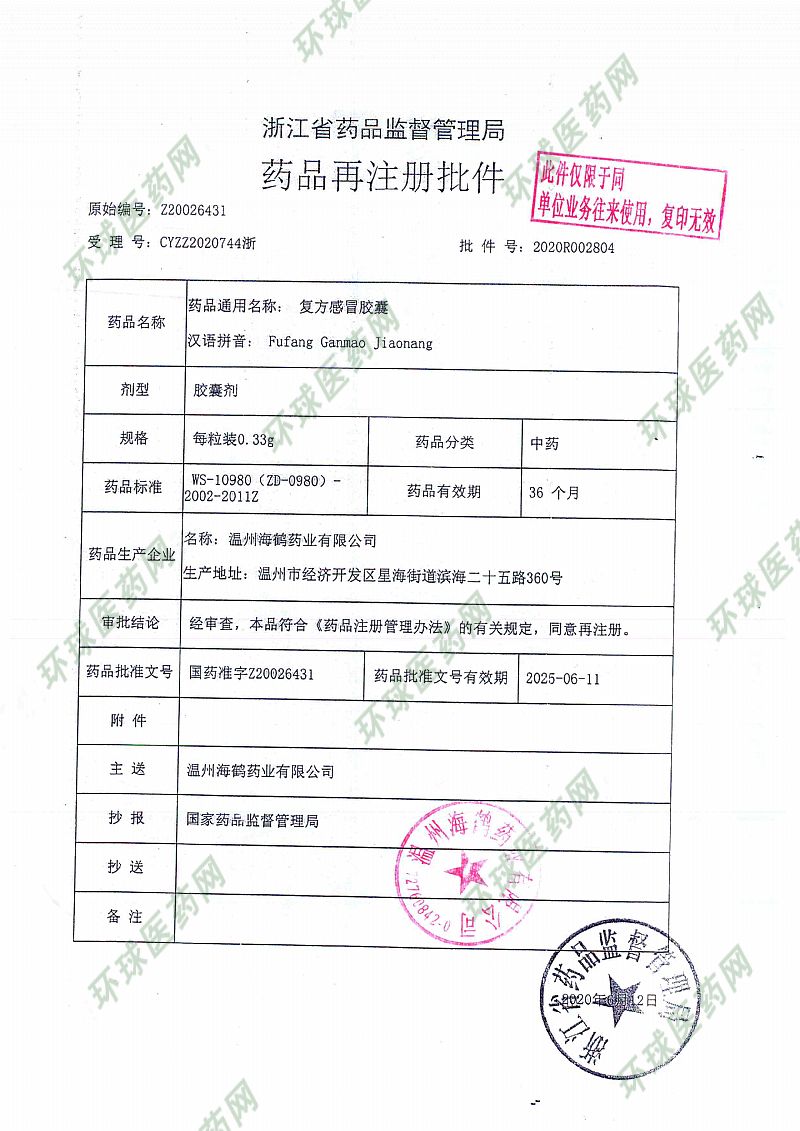 | 注冊商標(biāo) | 復(fù)方感冒膠囊 |