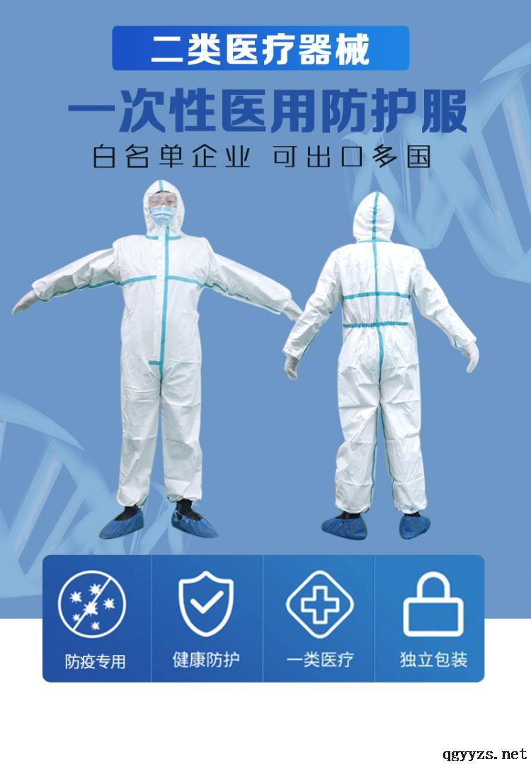 | 產(chǎn)品用途 | 【結(jié)構(gòu)組成】由無(wú)紡布縫紉和粘接而成。 二級(jí)防護(hù),65g/包,有亞膠條,防病毒,ICU、紅區(qū) 【適用人群】:臨床醫(yī)務(wù)人員 【適用范圍】供臨床醫(yī)務(wù)人員在工作時(shí)接觸到的具有潛在感染性的患者血液、體液、分泌物等阻隔、防護(hù)用。 【使用方法】展開(kāi)防護(hù)服,拉開(kāi)拉鏈,從拉鏈開(kāi)口處依次伸入雙腿,再穿著上衣,手從衣袖中伸出,帶好頭套,從胸前正面拉好拉鏈。 【注意事項(xiàng)、警示及提示性說(shuō)明】 (1)本產(chǎn)品為無(wú)菌、一次性使用產(chǎn)品,有效期三年; (2)本產(chǎn)品只限于一次性使用,打開(kāi)包裝后應(yīng)立即使用,使用時(shí)間不超過(guò)24小時(shí),用后應(yīng)焚燒處理; (3)穿著前如發(fā)現(xiàn)破損或拉鏈、縫線等任何部位有不妥之處,則不可使用; (4)防護(hù)服應(yīng)避免長(zhǎng)時(shí)間與化學(xué)物質(zhì)接觸。 (5)本產(chǎn)品無(wú)阻燃性。 |