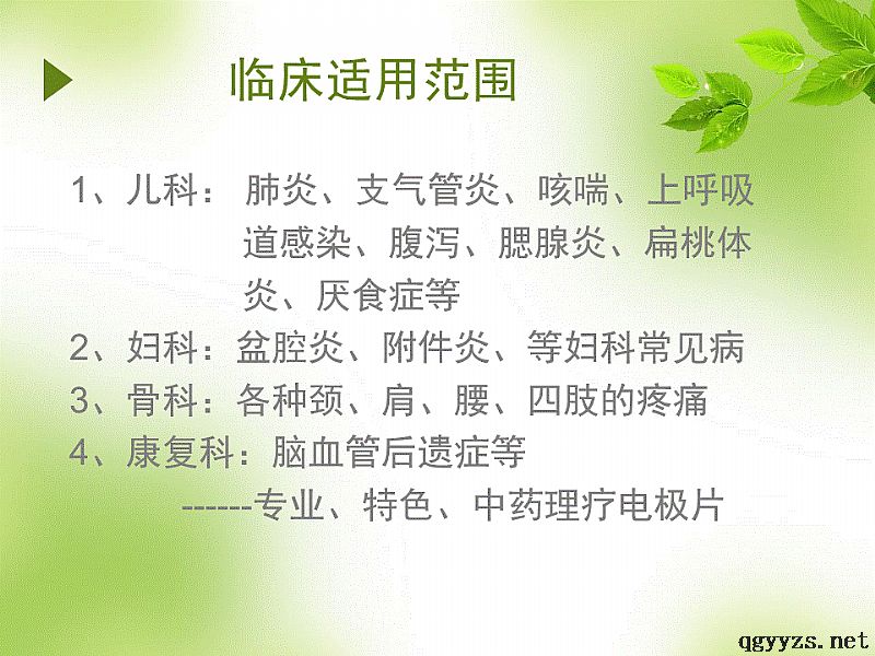 | 產(chǎn)品用途 | 兒科:肺炎、腹瀉、厭食癥;2、婦科:盆腔炎、附件炎;3、骨科:**頸肩腰腿痛;4、康復(fù)科:腦血管后遺癥透藥速度快,比自然滲透高上百倍。 治療時(shí)減少了個(gè)體差異,專用電極的有效成份被直接利用,其利用度可達(dá)60%以上。 顯效迅速,直接作用于病變組織,發(fā)揮其治療作用。 特制中藥專用電極片,有效成份持久穩(wěn)定。 有效成份進(jìn)入體內(nèi)后,入血量緩慢穩(wěn)定,避免了血藥濃度峰值時(shí)產(chǎn)生的毒副作用。 專用電極在病變組織處維持時(shí)間長、濃度高、提高了有效成份對(duì)靶組織的作用。臨床使用中無痛苦、無創(chuàng)傷、**、方便。 |