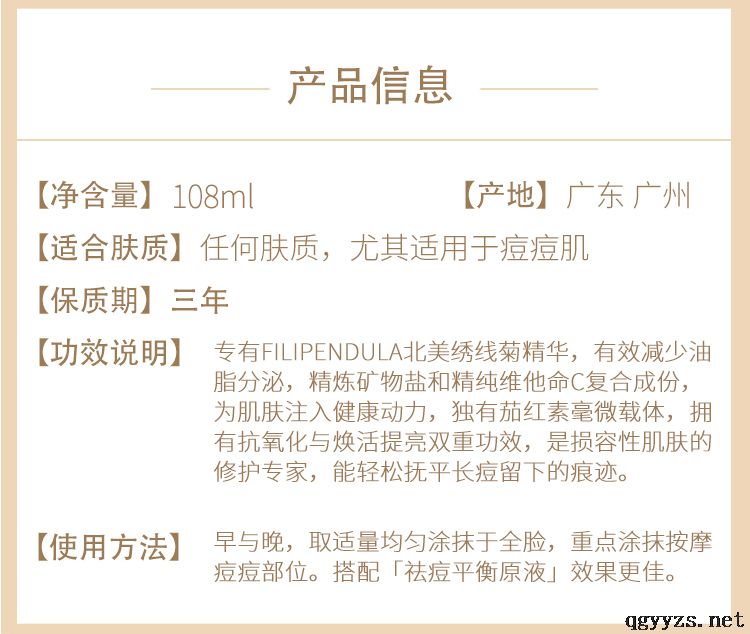 | 補(bǔ)充說(shuō)明 | 輕薄水感乳液有效舒緩肌膚,瞬間為肌膚注入大量水分,控制油水平衡,減少浮油亂竄、倍乘透嫩膚感并減少粉刺痘痘,!是每一款油痘肌。建議天天用,天天安心“調(diào)膚”。專用FILIPENDULA北美繡線菊精華,有效減少油脂分泌。精煉礦物鹽和精純維化命C復(fù)合成分,為肌膚注入健康動(dòng)力。 適用于痘痘肌油性肌膚,含有金釵石斛、黃連根、麝香草、丹參等植物提取精華,蘊(yùn)含多糖成份,質(zhì)地細(xì)膩溫潤(rùn),淡淡的香味,清透并緊致毛孔,煥顏補(bǔ)水,從肌底修護(hù)**痘痘肌油性肌及脆弱肌膚。 適用于痘痘肌油性肌膚,含有金釵石斛、黃連根、麝香草、丹參等植物提取精華,蘊(yùn)含多糖成份,質(zhì)地細(xì)膩溫潤(rùn),淡淡的香味,清透并緊致毛孔,煥顏補(bǔ)水,從肌底修護(hù)**痘痘肌油性肌及脆弱肌膚適用于痘痘肌油性肌膚,含有金釵石斛、黃連根、麝香草、丹參等植物提取精華,蘊(yùn)含多糖成份,質(zhì)地細(xì)膩溫潤(rùn),淡淡的香味,清透并緊致毛孔,煥顏補(bǔ)水,從肌底修護(hù)**痘痘肌油性肌及脆弱肌膚適用于痘痘肌油性肌膚,含有金釵石斛、黃連根、麝香草、丹參等植物提取精華,蘊(yùn)含多糖成份,質(zhì)地細(xì)膩溫潤(rùn),淡淡的香味,清透并緊致毛孔,煥顏補(bǔ)水,從肌底修護(hù)**痘痘肌油性肌及脆弱肌膚 |