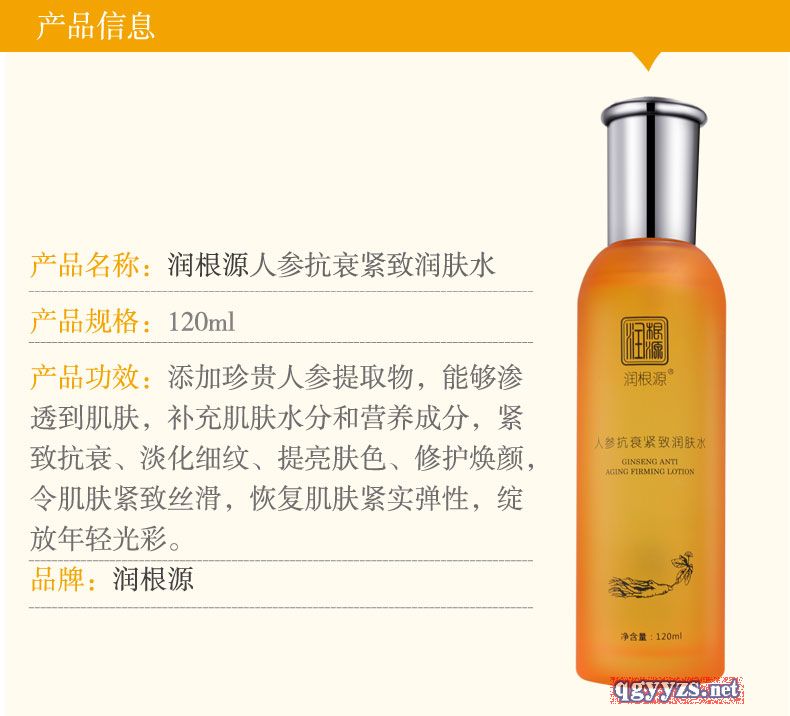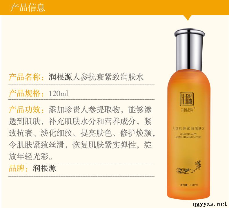 | 產(chǎn)品名稱 | 潤根源人參抗衰緊致潤膚水 |